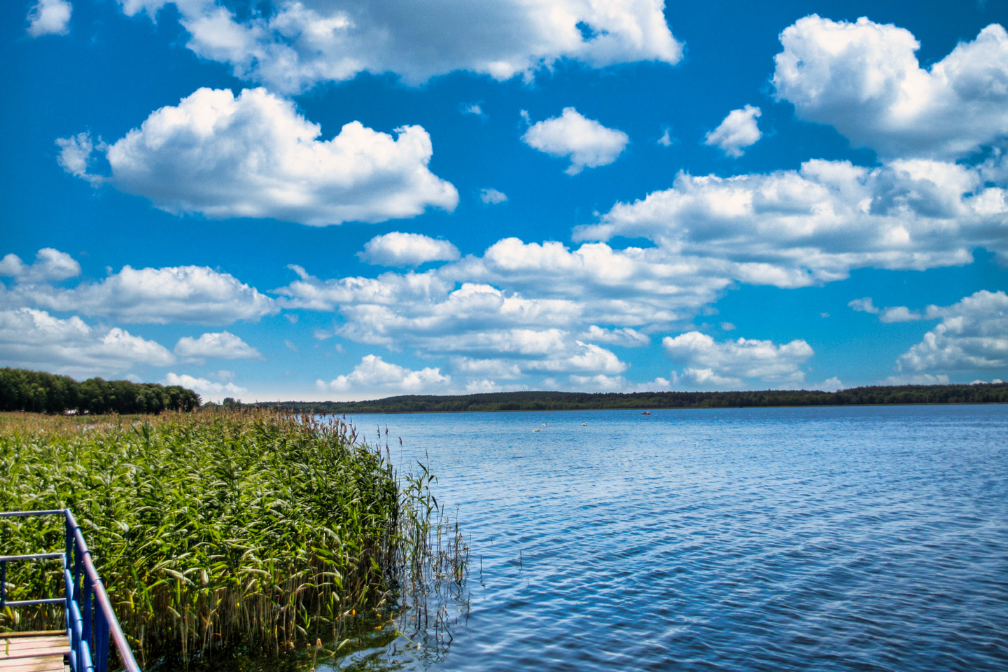 Z łagodnym zejściem do wody, niestrzeżonym kąpieliskiem oraz pomostem.